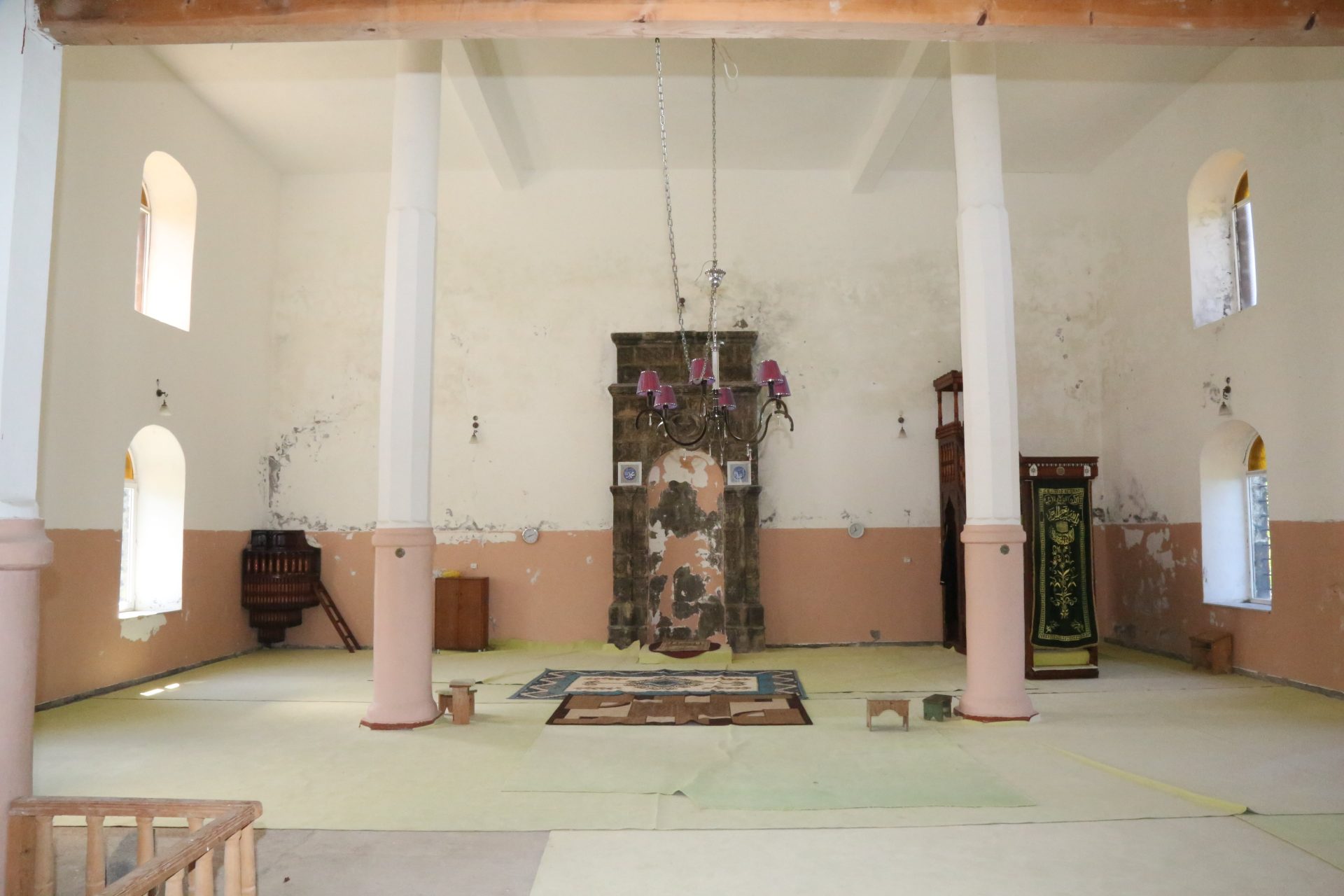 თავდაპირველად შიგა სივრცე ორსართულიანი ყოფილა და სამლოცველო დარბაზში შიგა აივანიც იყო მოწყობილი, მაგრამ ჩვენამდე არ შემონახულა. მეჩეთს საკმაოდ ვრცელი სამლოცველო დარბაზი აქვს. მასში ქვის ოთხი სვეტი დგას.        სვეტები ერთდროულად გამოყენებულია შიდა აივნის და ჭერის საყრდენებად. სამლოცველო დარბაზის მთლიანი ფართი 160 კვადრატული მეტრია. დარბაზის მარჯვნივ და მარცხნივ კედლებში გაჭრილია თაღოვანი ფანჯრები. ჭერში განთავსებულია საკმაოდ დიდი გუმბათი. ჭერის სიმაღლე გუმბათან ერთად ათ მეტრს შეადგენს. დარბაზში შემორჩენილია გათლილი ქვის ძველი მიჰრაბი, მისგან მარჯვნივ კი ხის ახალი მიმბარი დგას.